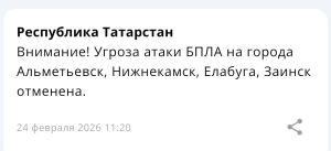 Угроза атаки БПЛА в четырех городах Татарстана отменена