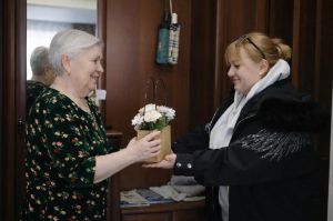 Һәлак булган хәрбиләрнең әниләре 8 Март алдыннан Алабуга районы башлыгы Рөстәм Нуриевтан чәчәкләр алдылар.